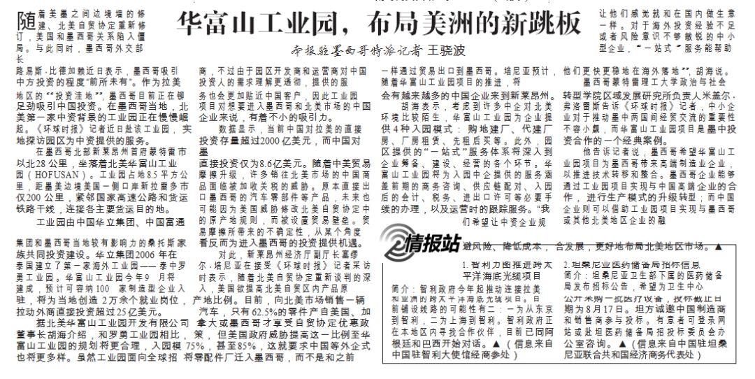 环球时报:华富山工业园,布局美洲的新跳板