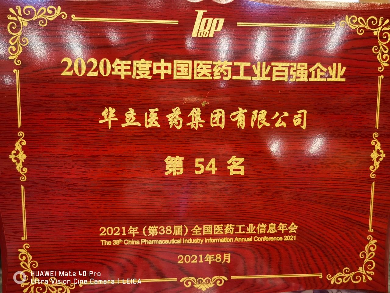 8月1日,在第38届全国医药工业信息年会上,“2020年度中国医药工业百强榜”正式发布,华立医药集团继续蝉联 “年度中国医药工业百强企业”榜单,位居54位!据悉,该榜是依据工信部的《中国医药统计年报》进行排名,《中国医药统计年报》是年度出版的、反映国家医药工业经济运行状况的唯一官方资料。